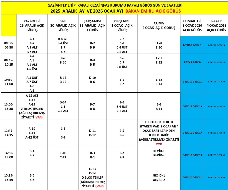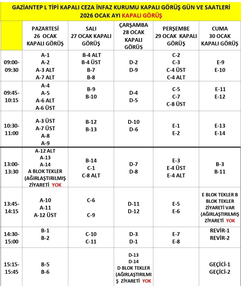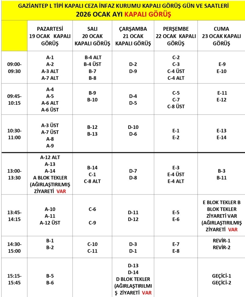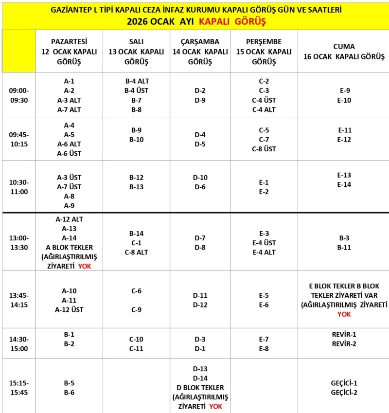 OCAK 2026 DÖNEMİ AÇIK VE KAPALI ZİYARET PROGRAMI YAYINLANMIŞTIR.